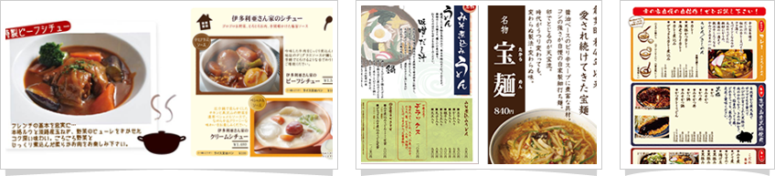 税理士事務所リーセットが他の税理士事務所と異なるところ。 フードアカウンティング協会から派遣される飲食店専門のコンサルタントによるお店診断をもとに、下記サポート例のような集客販売促進ツール作成(企画・デザイン)をお手伝いいたします。 当事務所のお客様には顧問料以外の料金を頂いておりません。(注)印刷費用実費のみご負担下さい。